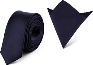 Herren Schmale Krawatte & Einstecktuch Set SP/P (150cm x 5cm, 22cm x 22cm, Marineblau)