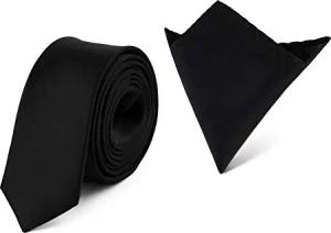 Herren Schmale Krawatte & Einstecktuch Set SP/P (150cm x 5cm, 22cm x 22cm, Schwarz)