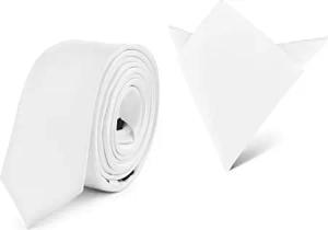 Herren Schmale Krawatte & Einstecktuch Set SP/P (150cm x 5cm, 22cm x 22cm, Weiß)