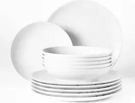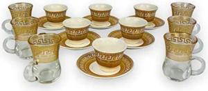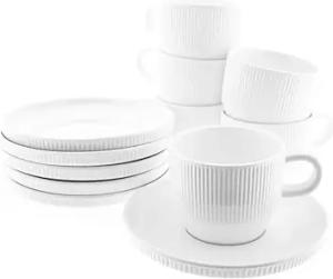 12 Teiliges Kaffee-Set, 6x Kaffeetassen, 6x Untertasse in Weiß mit Riffle Design