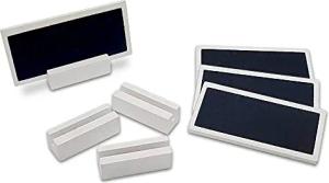 12 Mini Tafeln aus Holz mit Ständer - 6 x 3 cm - Weißer Rand/zum Beschriften, Kreidetafeln, Tafeln klein, mini Tafeln, Wegweiser, Hochzeit, Tischkarten, Memo, Message, Tischdeko