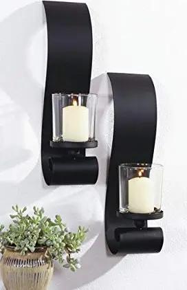 Wandkerzenhalter 2er Set Kerzenhalter Metall Schwarz 35 cm