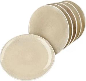 Tzia 6er Set Speiseteller I handgefertigte Steingut-Teller in Vanille & Weiß I 6 Personen I große Teller für Hauptgerichte, Salate & Co.