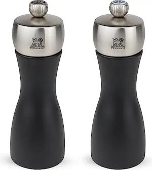 Mühlenset Fidji 15 cm Pfeffermühle und Salzmühle - Stahlmahlwerk - Klassische Mahlgradeinstellung - Aus Holz mit PEFC-Siegel - Schwarz lackiert