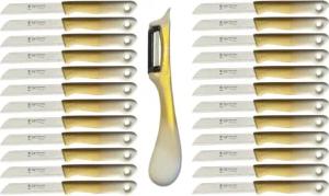 24-tlg Schälmesser Wellenschliff Set Solingen Obstmesser Gemüsemesser mit 1 Sparschäler Kartoffelschäler, Gold und Weiß - Rechts- und Linkshänder nach klingen wechseln
