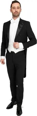 Schwarzer Frackanzug für Herren - 2-teiliger Frack mit Jacke und Hose - Model Prague - Grösse 27 - Herren - Bekleidung - Slim-fit - Wollmix - Knopen