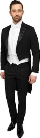 Schwarzer Frackanzug für Herren - 2-teiliger Frack mit Jacke und Hose - Model Prague - Grösse 102 - Herren - Bekleidung - Slim-fit - Wollmix - Knopen