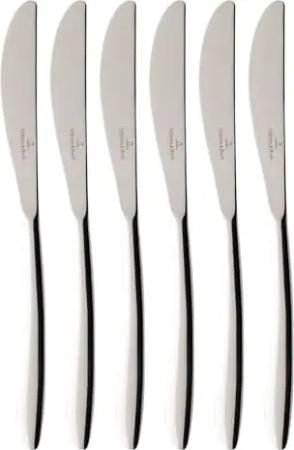 SoftWave Tafelmesser 6er Set, 237 mm, Speisemesser mit geschwungenem Griff, Spülmaschinenfest & Rostfrei, 18/10 Edelstahl, Silber