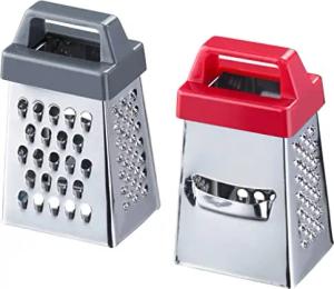 2 Mini-Vierkantreiben, mit vier Reibeflächen, Rostfreier Edelstahl/Kunststoff, Silber/farbiger Griff, 116922E3