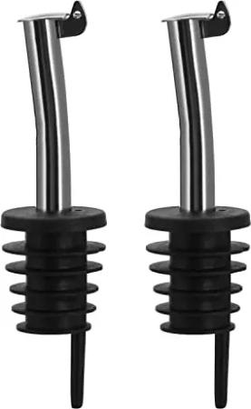 2 Spirituosen-Ausgießer für Flaschen, Mit Klappe und Luftröhrchen, Kunststoffkorken, Rostfreier Edelstahl, Inox Eco-Pour, Schwarz/Verchromt, 45572280