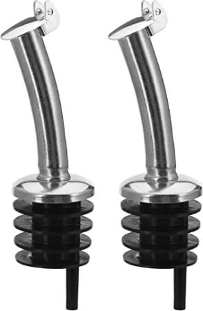 2 Spirituosen-/Öl-Ausgießer für Flaschen, mit Kläppchen, mit Luftröhrchen, Metall/rostfreier Edelstahl, Silikonkorken, Inox Gastro, Silber, 46832280