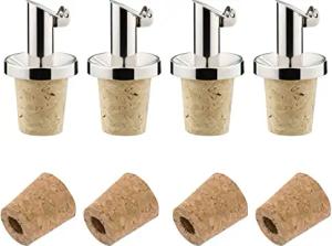 4 Öl-/Essig-Ausgießer + 4 Ersatzkorken, mit Kläppchen, Metall/rostfreier Edelstahl, Naturkorken, Inox Öl-Spezial, 478022E3
