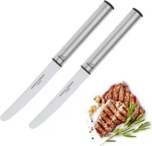 Steakmesser - 2er Set Küchenmesser mit Wellenschliff - 12cm Klingenlänge - Vespermesser aus 100% rostfreiem Edelstahl - Auch ideal als Brötchenmesser geeignet - (silber/schwarz)