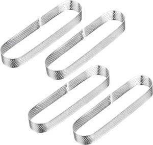 Tarte-Rahmen 4 Stk. – Perfekte Tarte- und Quicheformen – Gleichmäßiges Backergebnis dank Perforation – Silber, oval