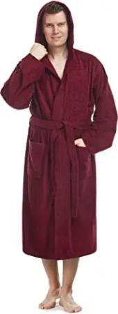 Herren Bademantel mit Kapuze, Größe: S-M Lang, Farbe: Bordeaux