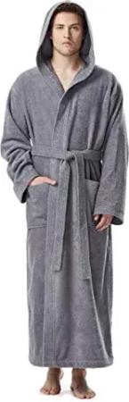 Herren Bademantel mit Kapuze, Größe: S-M Lang, Farbe: Grau
