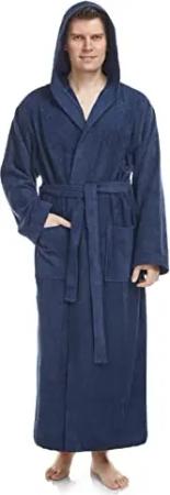 Herren Bademantel mit Kapuze, Größe: S-M Lang, Farbe: Marine