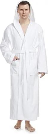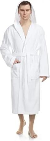 Herren Bademantel mit Kapuze, Größe: S-M Lang, Farbe: Weiß