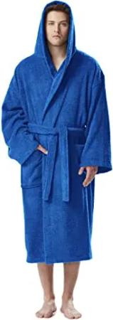 Herren Bademantel mit Kapuze, wadenlang, S-M, Königsblau
