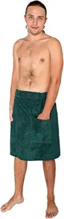 Saunakilt für Herren, 100% Bio-Baumwolle-Frottee, Knielang, mit Gummizug und Klettverschluss, Saunatuch, Badehandtuch, Größe: P/S, Farbe: Jagdgrün