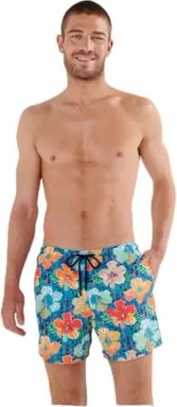 Dino Badeshorts, Blumendruck auf türkisfarbenem Hintergrund, 48