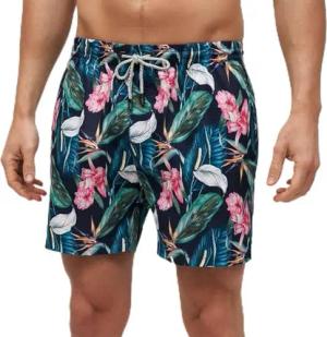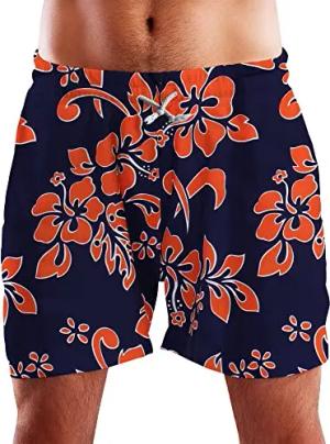 Funky Hawaii Schwimm-Hose Bade-Hose Bade-Shorts, Hibiscus, Navyblau Orange, XL