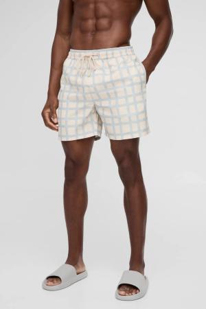 Mittellange Karierte Badehose - Taupe - S, Taupe