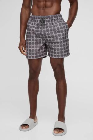 Tall strukturierte mittellange Badehose - Grau - S, Grau