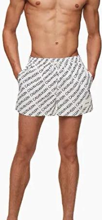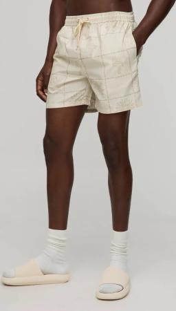 Mittellange Badehose mit tropischem Print - Ecru - XS, Ecru