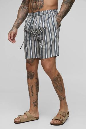Tall mittellange gestreifte Badehose - Grau - S, Grau