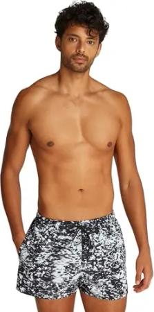 Herren Badehose Short Drawstring-Print mit Tunnelzug, Mehrfarbig (Glitched Marble AOP Black), M