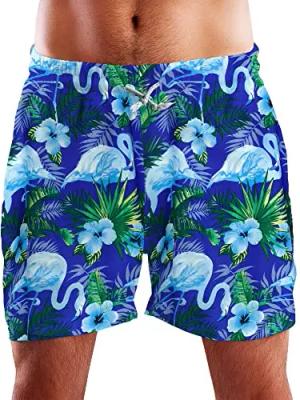Funky Hawaii Schwimm-Hose Bade-Hose Bade-Shorts, Flamingo Flowers, Blau Türkis, XL