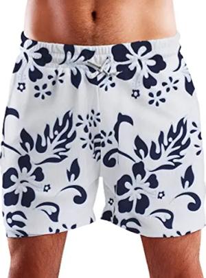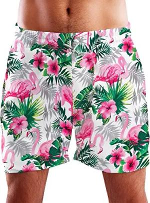 Funky Hawaii Schwimm-Hose Bade-Hose Bade-Shorts, Flamingo Flowers, Weiß Pink, S