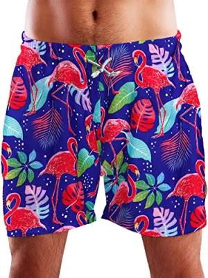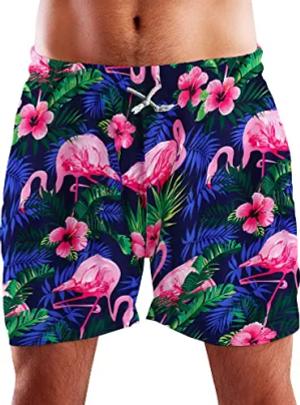 Funky Hawaii Schwimm-Hose Bade-Hose Bade-Shorts, Funky Flamingos, Blau, XL