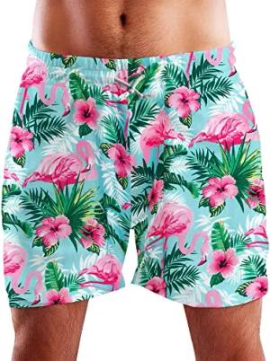Funky Hawaii Schwimm-Hose Bade-Hose Bade-Shorts, Flamingo Flowers, Blau Türkis, XL