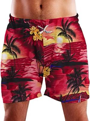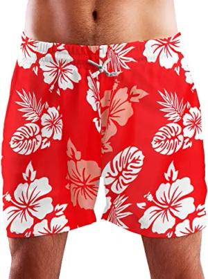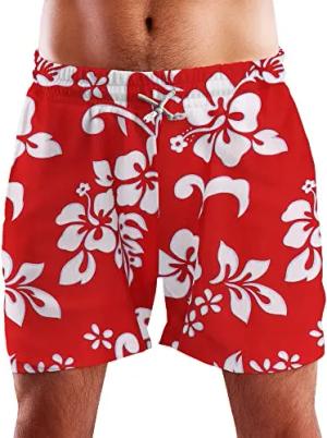 Funky Hawaii Schwimm-Hose Bade-Hose Bade-Shorts, Surf, Rot, XL