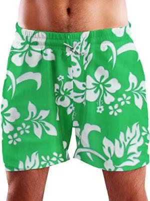 Funky Hawaii Schwimm-Hose Bade-Hose Bade-Shorts, Hibiscus, Grün, XL