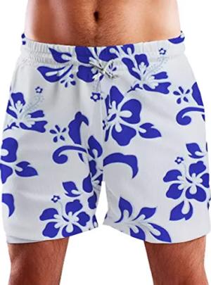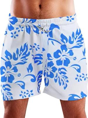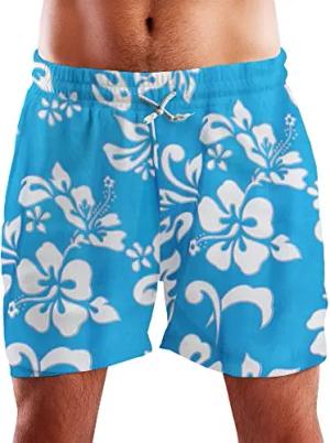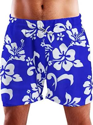Funky Hawaii Schwimm-Hose Bade-Hose Bade-Shorts, Hibiscus, Weiß Indigoblau, S