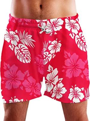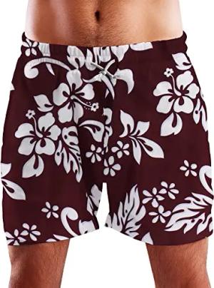Funky Hawaii Schwimm-Hose Bade-Hose Bade-Shorts, Hibiscus, Maroonrot, L