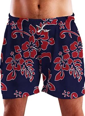 Funky Hawaii Schwimm-Hose Bade-Hose Bade-Shorts, Hibiscus, Navyblau Rot, XL