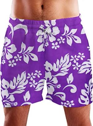 Funky Hawaii Schwimm-Hose Bade-Hose Bade-Shorts, Mono Hibiscus, Violett Weiß, S