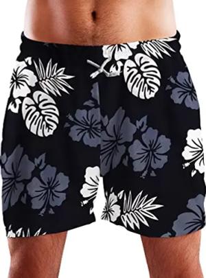 Funky Hawaii Schwimm-Hose Bade-Hose Bade-Shorts, Hibiscus, Schwarz, XL