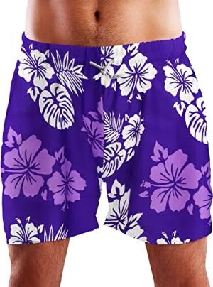 Funky Hawaii Schwimm-Hose Bade-Hose Bade-Shorts, Hibiscus, Violett, XXL