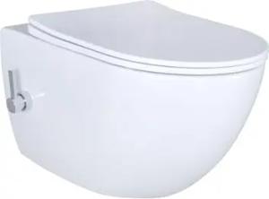 RIMOFF Wand WC Weiß - WC-Deckel mit Absenkautomatik - Bidet Taharet Edelstahl Düse Kaltwasserhebel - spülrandlos hygienisch wandhängend