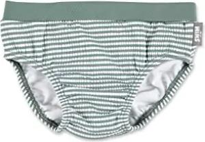 Badehose Hai – UV-Schutz 50+ Schwimmhose Jungen – Badehose mit Hai-Druck & Seersuckeroptik – Windeleinsatz bis Größe 86/92 & Kordelzug – mattgrün, Größe 92