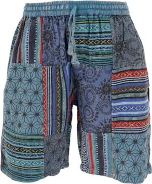 GURU SHOP Ethno Yogashorts, Patchwork Shorts - Blau, Herren, Size:L