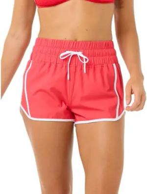 2025 Frauen High Waist Retro Volley 3" Boardshorts 01QWBO - Hibiscus Red