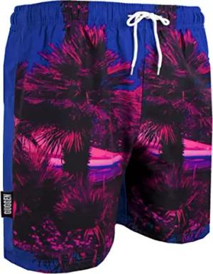 Badehose für Herren Schnelltrocknende Badeshorts 1602 mit Kordelzug Beachshorts Boardshorts Schwimmhose Männer mit Palmen Rosa Blau M