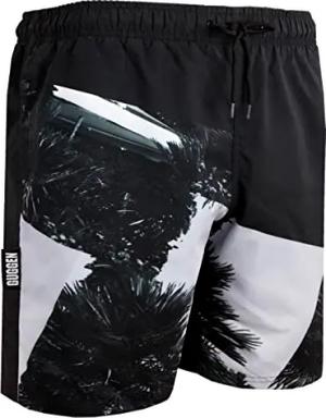Badehose für Herren Schnelltrocknende Badeshorts 1603 mit Kordelzug Beachshorts Boardshorts Schwimmhose Männer mit Palmen Schwarz Weiss XL