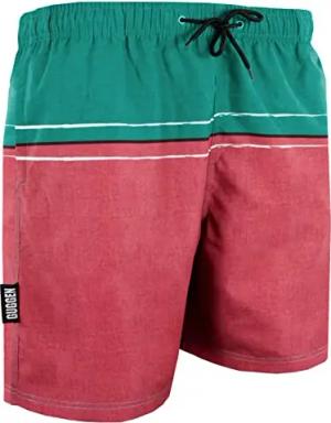 Badehose für Herren Schnelltrocknende Badeshorts 1607 mit Kordelzug Beachshorts Boardshorts Schwimmhose Männer mit Streifen Gruen Rot S